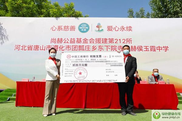 2021年5月17日,河北省遵化市團瓢莊鄉東下院寺尚赫侯玉霞中學舉行揭牌儀式,這是尚赫在全國范圍內援建的第212所,河北省第8所公益學校。