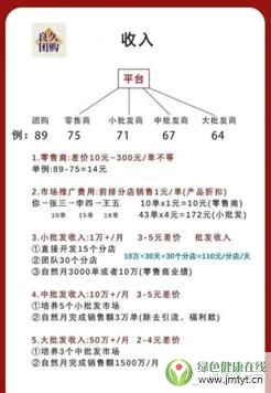 團購價銷售,分銷價報單,利潤當天結算,可以說是每日收入秒結;第2部分的收入:就是代理單的返利。你推薦的直接代理,如果她每天接了單,她的每一單,你都有1元到2元不等的返利,不要小瞧這個1-2元,單一多了,這個返利是很可觀的;第3部分的收入:就是直屬收入。如果你能夠在某一個月里面,帶著以你為原點的團隊做到10萬的業績,并且你的直接推薦的代理人數達到15位以上,你的整個團隊人數達到30人以上,那么,你就會升到一個級別,叫“直屬”。