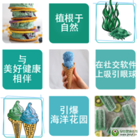 GNT開發的綠色和藍色的愛百瑞產品是由螺旋藻制成的,螺旋藻是一種藍藻,是目前唯一一種植物基的藍色富色食品。為了產生綠色的色調,GNT將螺旋藻濃縮物與黃色原料濃縮物混合,產生從綠松石色到石灰綠色的色譜。去年,GNT開發了一系列具有更高亮度的藍色粉末。這些粉末使制造商能夠從植物性的、可追蹤來源的原料中配制出具有鮮明藍色的產品。而且,因為它們具有更強烈的顏色,可以在減少劑量的情況下使用。