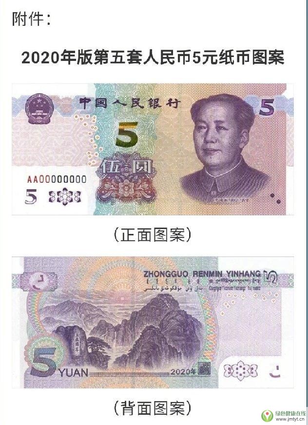 中國(guó)人民銀行定于2020年11月5日起發(fā)行2020年版第五套人民幣5元紙幣。2020年版第五套人民幣5元紙幣保持2005年版第五套人民幣5元紙幣規(guī)格、主圖案、主色調(diào)、“中國(guó)人民銀行”行名、國(guó)徽、盲文面額標(biāo)記、漢語拼音行名、民族文字等要素不變,優(yōu)化了票面結(jié)構(gòu)層次與作用,提升了整體防偽性能。