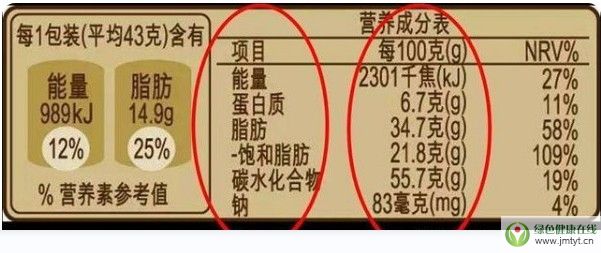 所以看第二列時(shí),需要了解準(zhǔn)確的數(shù)據(jù)時(shí),要根據(jù)凈含量計(jì)算。例如該食物的脂肪是每100克34.7克,而這種食物一包是500克,那么這一包食物的脂肪就有34.7*5=173.5克這么多。而這個(gè)食物每100克所含的脂肪就占人體所需脂肪的58%,
